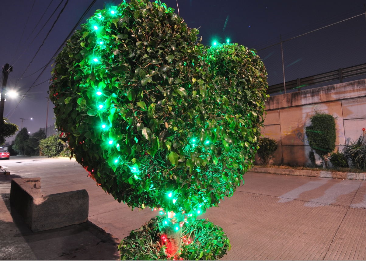 we planted the tree, I made the heart-cut time ago, and now we added lights for season